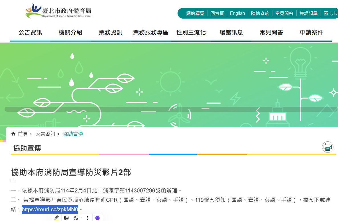 (一)民眾版心肺復甦術CPR(國語、臺語、英語、手語)。