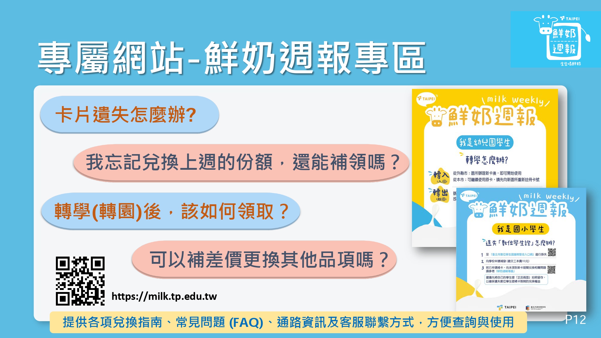 「鮮奶週報」專區:http://milk.tp.edu.tw
